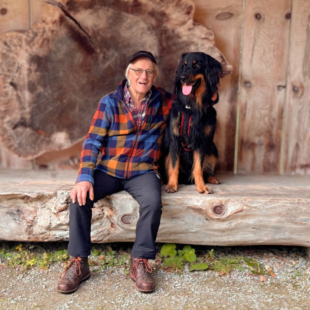 Günter ist gebürtiger Karlsruher, ich bin 1981 hierhergezogen und geblieben. Wir sind beide viel gereist und haben Länder wie Südafrika, Neuseeland, Thailand und Israel kennengelernt. Während seiner Studienzeit war Günter zusätzlich in Amerika, Indien, Nepal, Iran und Afghanistan unterwegs. Als Bauingenieur war er bis zu seiner Berentung bei einer großen Baufirma tätig und dabei auch häufiger im Ausland im Einsatz. Nach meinem Studium führte ich eine eigene Praxis als Frauenärztin, bis ich mich 2022 in den Ruhestand verabschiedete und seitdem mehr Zeit für Natur und Hund habe.